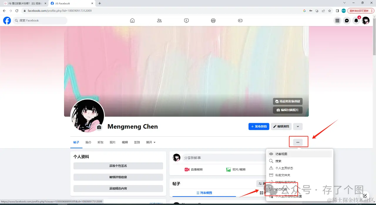 打开网页版的脸书在个人主页点击“...”