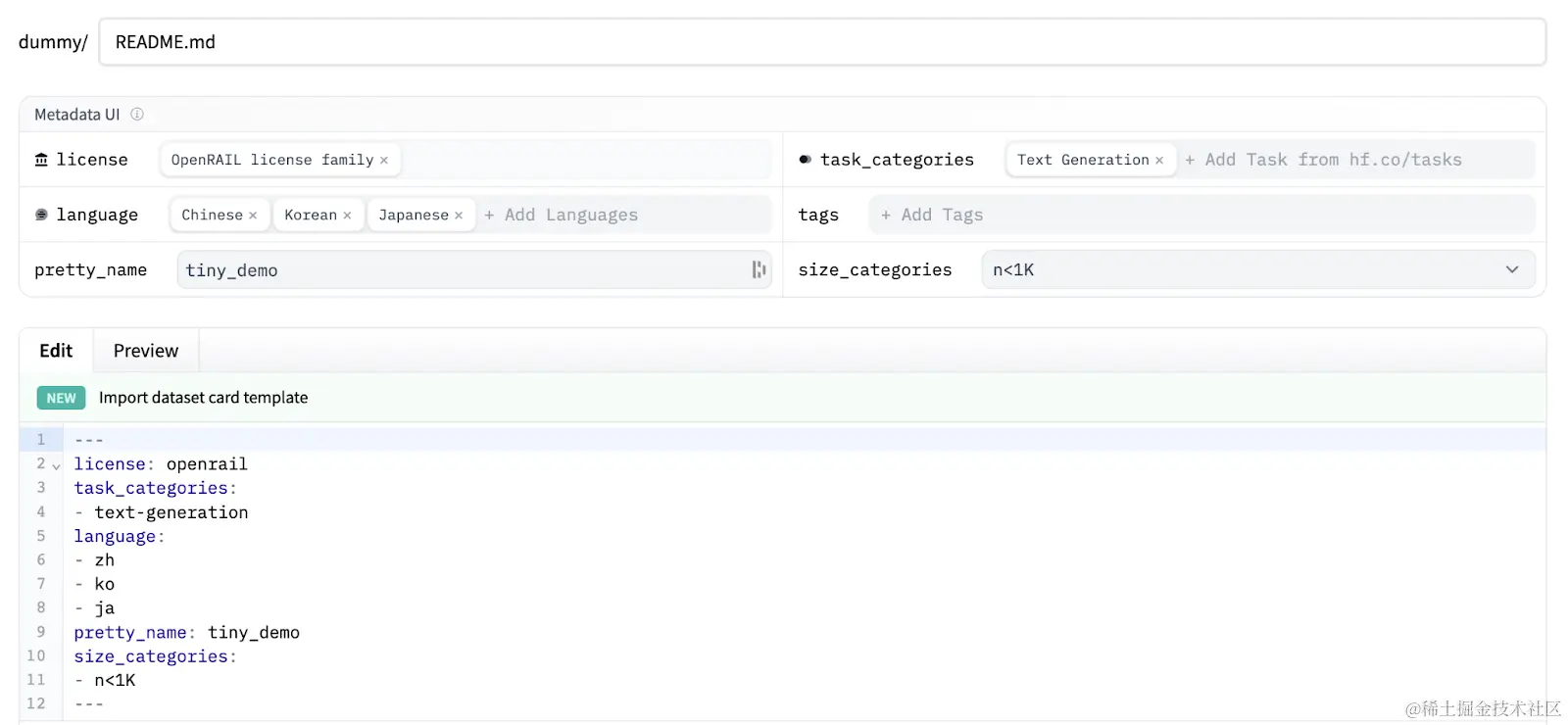 我们建议在数据集卡片内容中添加指向你的 arXiv 论文的链接。HF 会自动将它们链接在一起。 你可以在其官方文档中阅读有关数据集卡片的更多信息。
