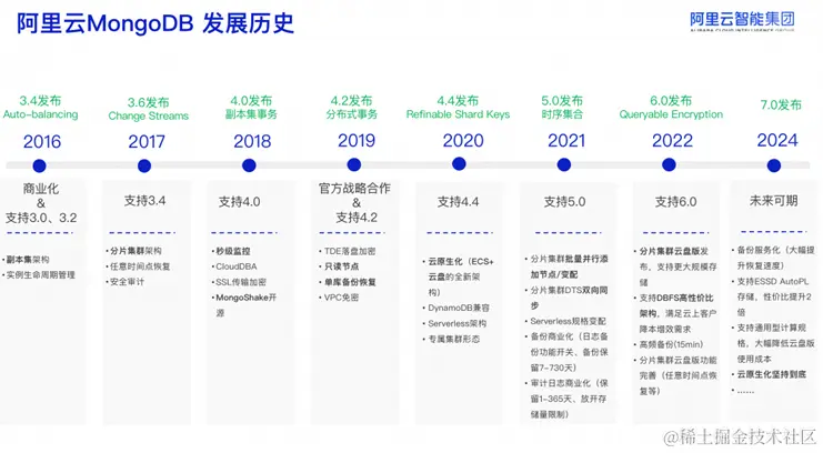 2024年1月10日,阿里云MongoDB 7.0版本正式发布,带来了诸多创新功能和显著改进,旨在提升性能、增强数据管理能力,并为开发者提供更丰富、更灵活的工具集。无论是在大规模数据处理、实时分析还是在构建高性能应用方面,MongoDB 7.0都无疑是值得期待和信赖的选择。