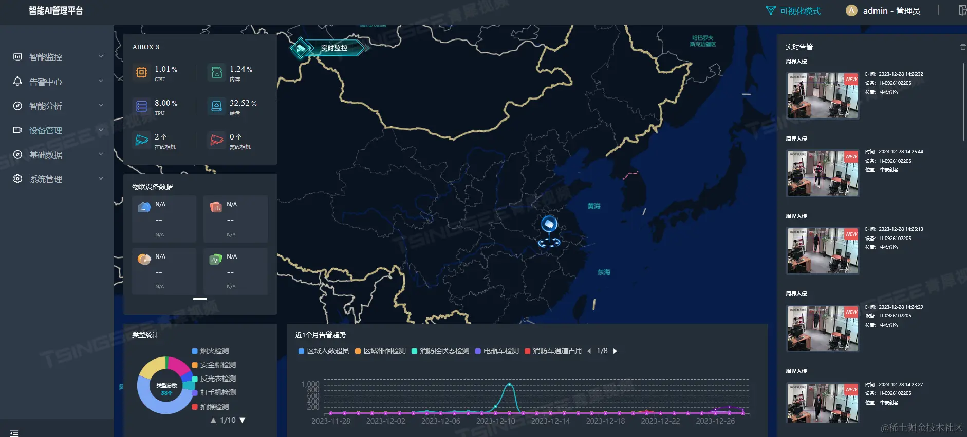 TSINGSEE智能分析网关V4属于高性能、低功耗的软硬一体AI边缘计算硬件设备,内置近40种AI算法模型,支持对接入的视频图像进行人、车、物、行为等实时检测分析,上报识别结果,并能进行语音告警播放。在算法上,硬件可支持行人结构化数据、区域人数统计、客流统计、区域人数异常检测、区域人数不足检测、区域人数超员检测等。