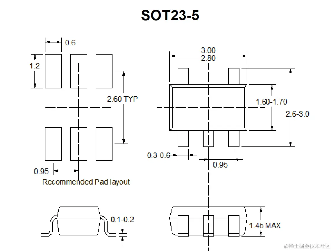 TP6062的封装形式,采用SOT23-5进行封装。