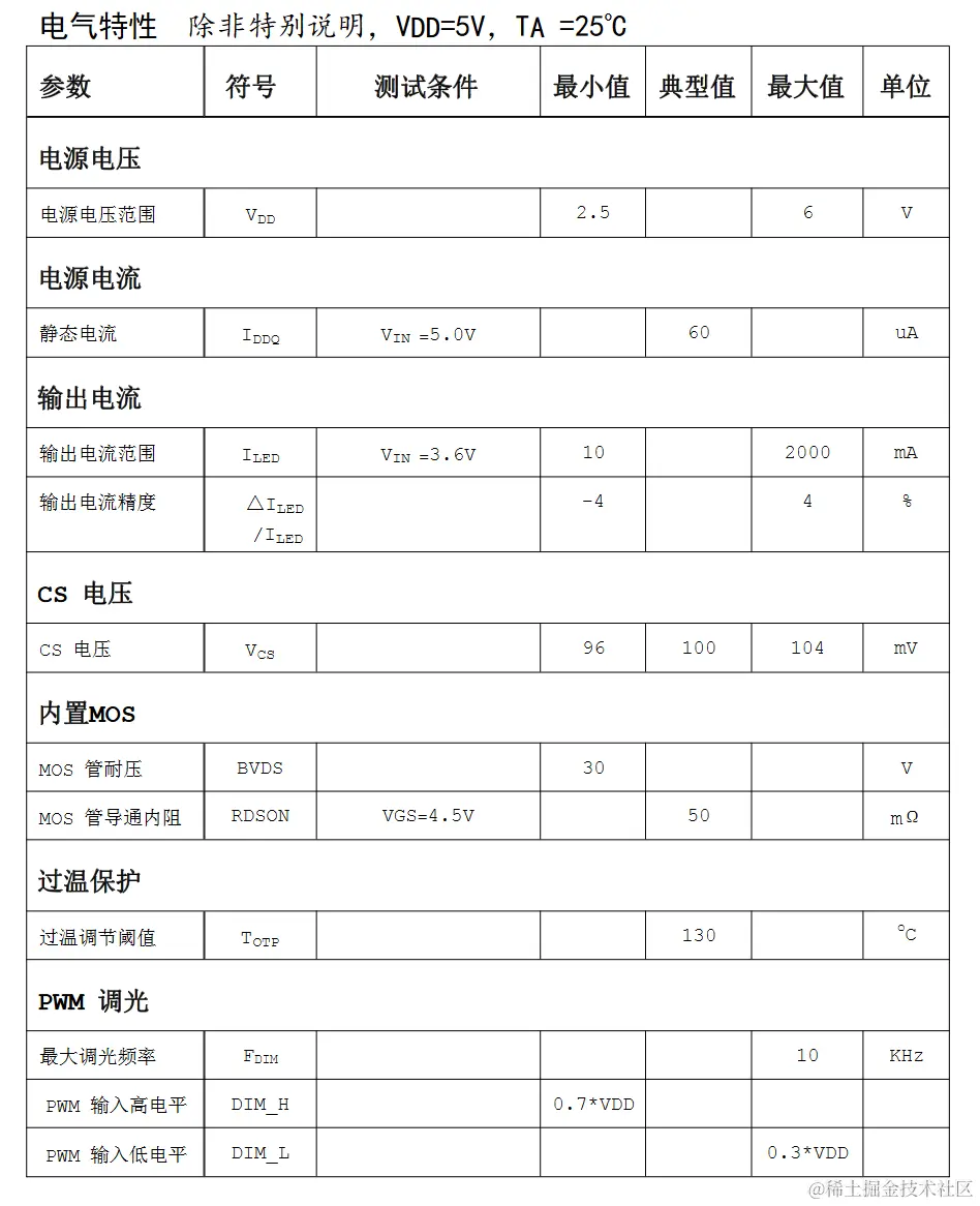 - PWM 调光:最高频率 10KHz