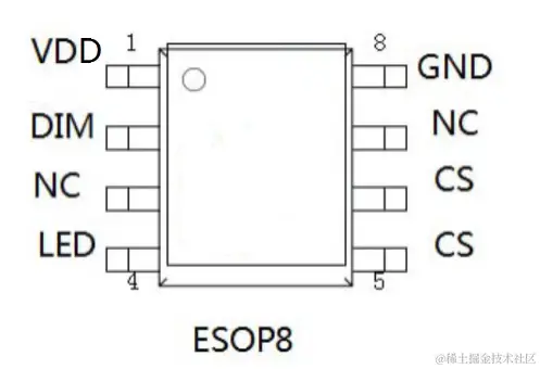 其中 RCS 为采样电阻,为了保证输出电流的恒流精度,RCS 要应使用 1%以内的高精度电阻。