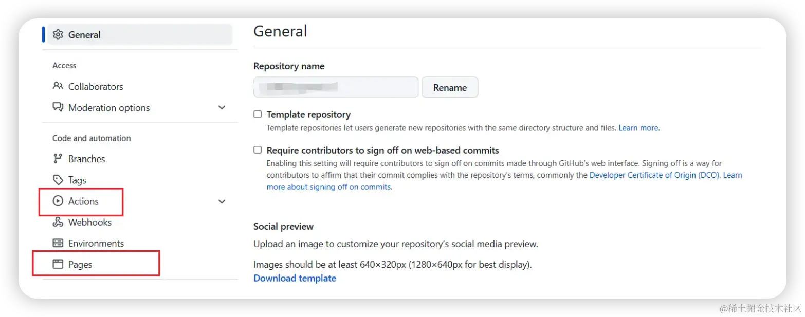 3、选择Settings -> Pages,在 Source 一栏的 Branch 里勾选gh- pages,保存。然后选择上方菜单中的Actions,点击中间的绿色按钮打开 Action 功能,绑定自定义域名也在page页面里。到这里实际上已经部署完成了。