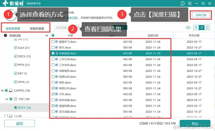 步骤3:等待软件快速扫描完成,用户可通过【按类型查看】或【按路径查看】对扫描到的数据进行查看,如果此次扫描到的数据比较少,点击【深度扫描】有机会获取更多数据;
