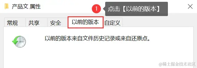 步骤2:进入【以前的版本】中找到文件删除之前的版本;