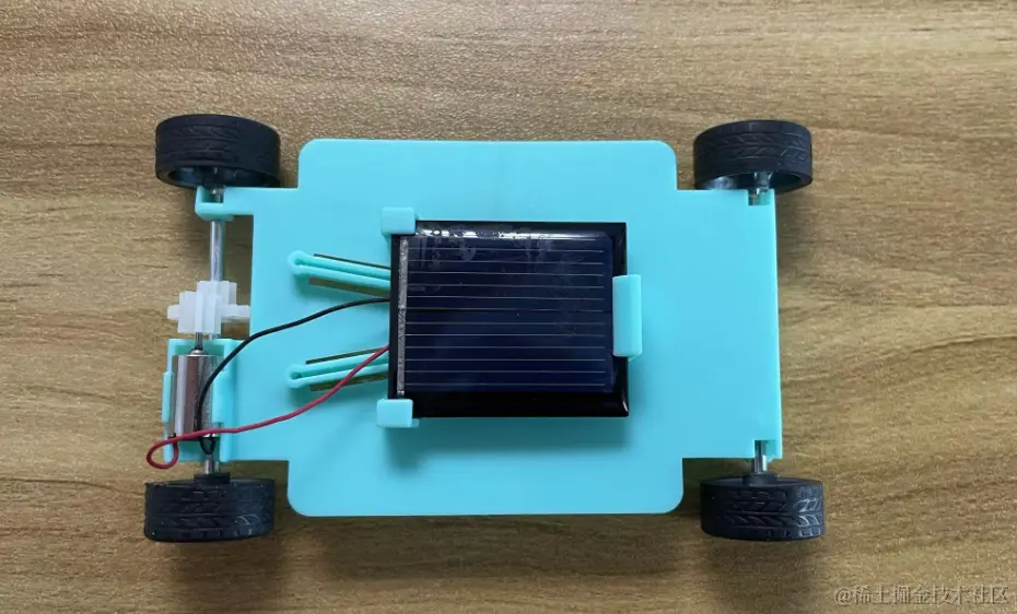 接下来就是拼接好车身焊接好太阳能板和马达的接线了