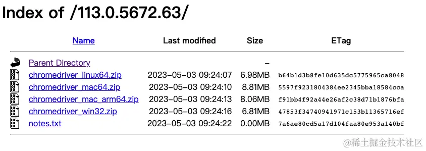 贴一下具体的下载地址: chromedriver.storage.googleapis.com/index.html