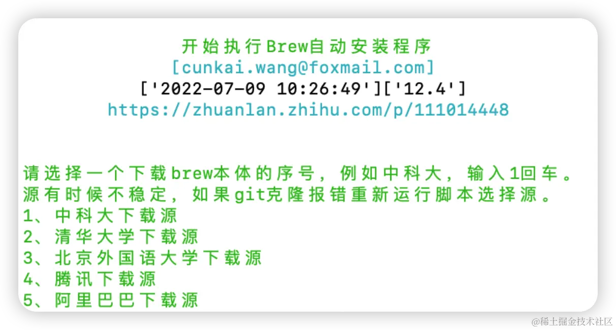 六、Brew本体安装成功,选择以后安装的国内镜项,这里我依然选择2