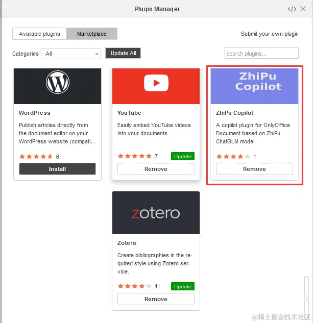 这个功能想必是大家的最爱了吧,支持安装 ChatGPT、智谱AI等等插件,AI大模型对工作效率的提升是显著的,ONLYOFFICE办公套件走在了智能化办公的前沿。