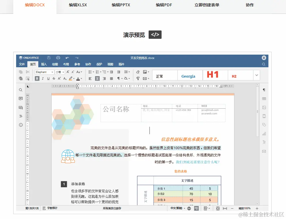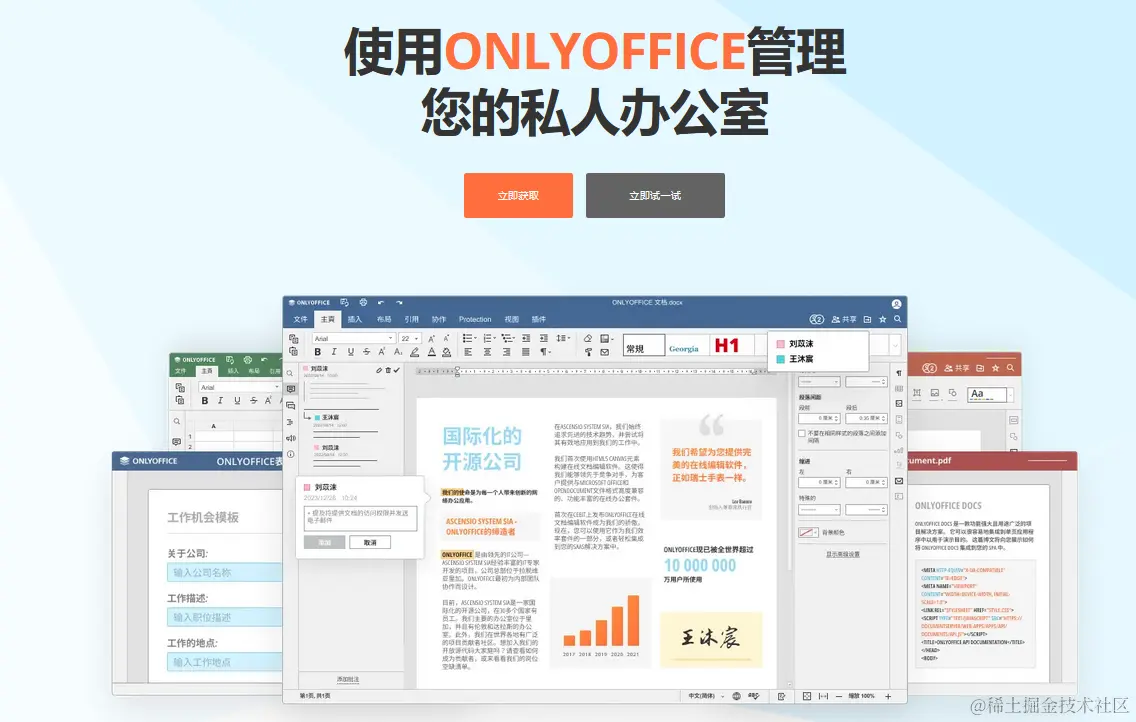 ONLYOFFICE一款免费、开源的云端在线办公编辑软件平台,可以理解为升级版、功能更加强大的office 套装,支持在线编辑各种文档的工具。