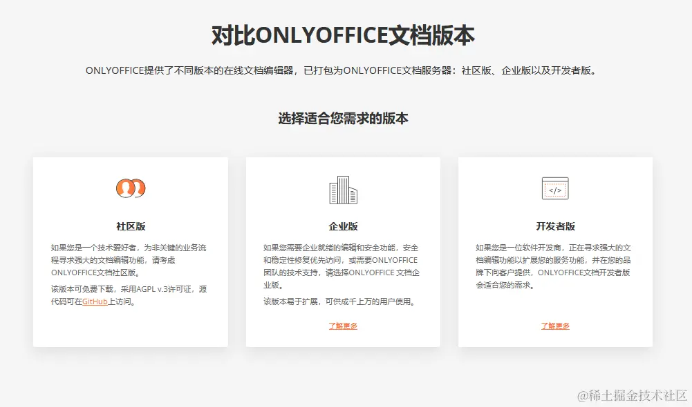 想要进行二次开发的用户建议使用开发者版,企业用户可以选择企业版,下载地址:ONLYOFFICE点击免费下载