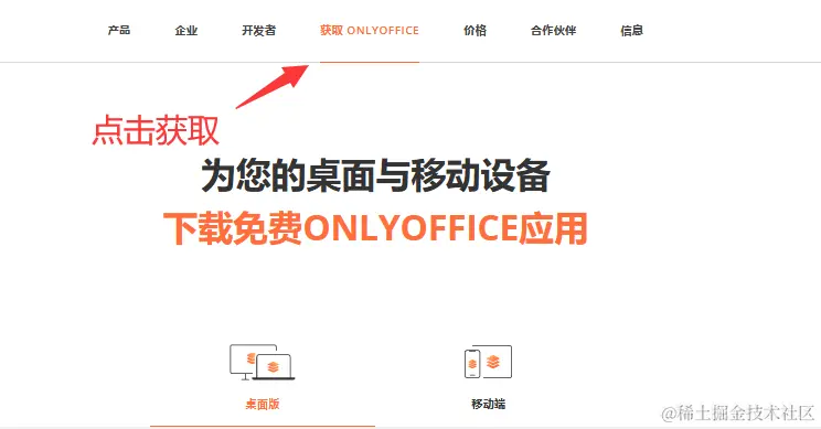 1、打开ONLYOFFICE的官网,选择获取ONLYOFFICE: www.onlyoffice.com/zh/download…