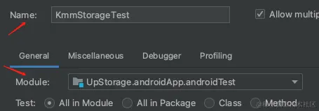 +按钮,选择 Android Instrumented Tests - 指定测试名称,选择测试模块,点击 OK,最后点击运行按钮