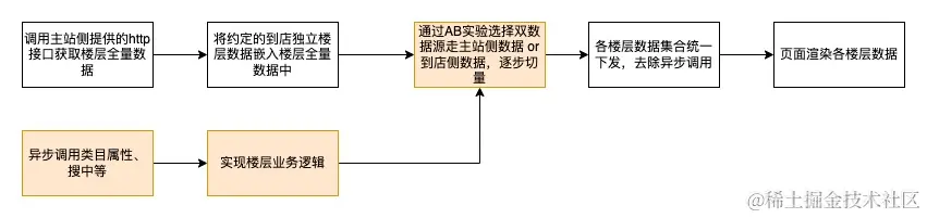 缺点:由于楼层配置由主站侧控制,独立服务要是未返回有效数据时,前端页面会显示出楼层空隙;到店侧无法了解到全流程,不利于长期迭代。