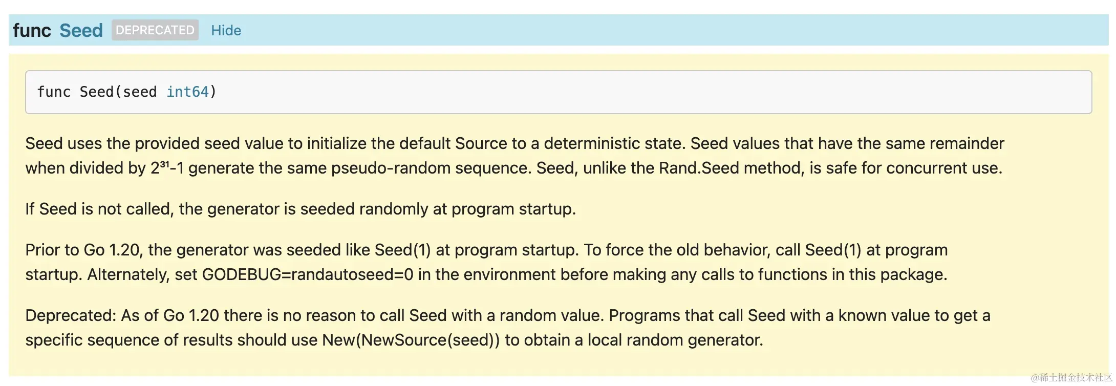 完整阐述的话内容物是比较多的,本次仅挑了一些我觉得使用端上有必要了解的。如果有想进一步了解的同学可以细看:math/rand/v2。