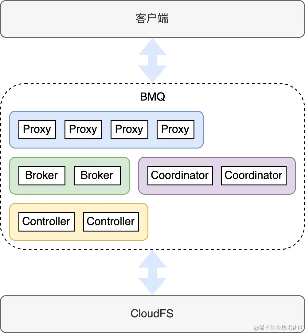 - 存算分离:BMQ 充分使用云存储,实现存储与计算的分离,提高了计算资源的利用率,由云存储组件CloudFS保证数据一致性。