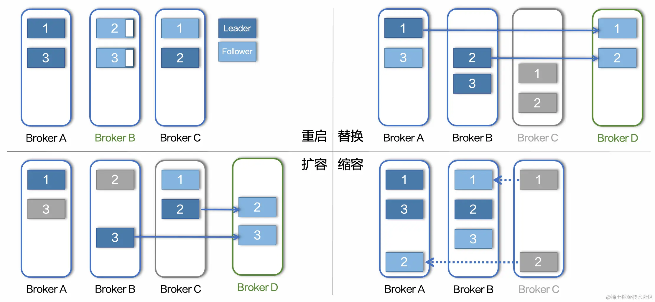 在Kafka的运维过程中,有四种常见的操作:重启、替换、扩容和缩容。