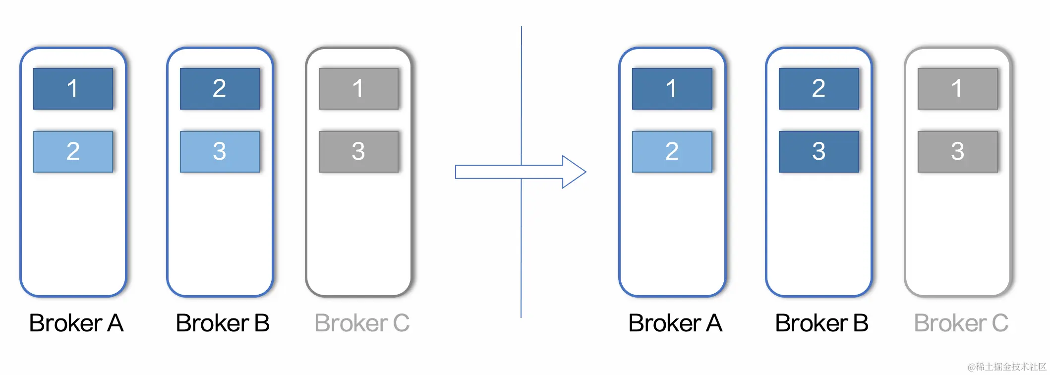 - 重启操作由以下几步组成:首先将 Leader 节点从待重启的机器上转移走后重启该机器。机器重启后,开始获取重启期间延迟的消息(Lag),Lag 消息追完后,再将 Leader 节点切回此机器。此过程的主要问题在于它既慢又会涉及到数据拷贝;