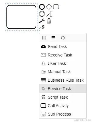 具体操作方法:单击左侧菜单中的Create Task图标,然后将任务拖放到随机位置。单击任务后,单击Change Type图标,然后从菜单中选择Service Task。