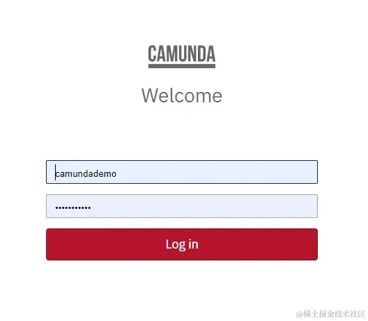 启动完成后,在浏览器上访问地址http://localhost:8080/,您将看到 Camunda 登录页面:
