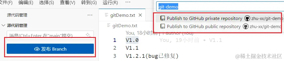 推送 branch: 第一次推送需要手动绑一下远程库的账号密码