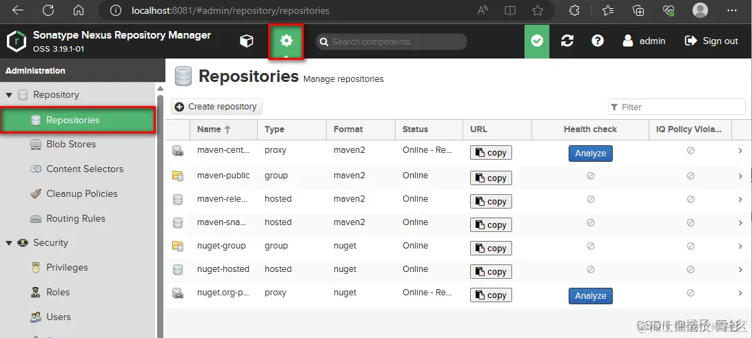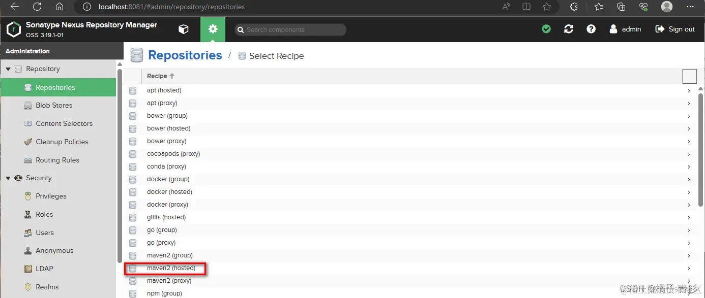 点击菜单栏中的Repositories,显示仓库列表:
