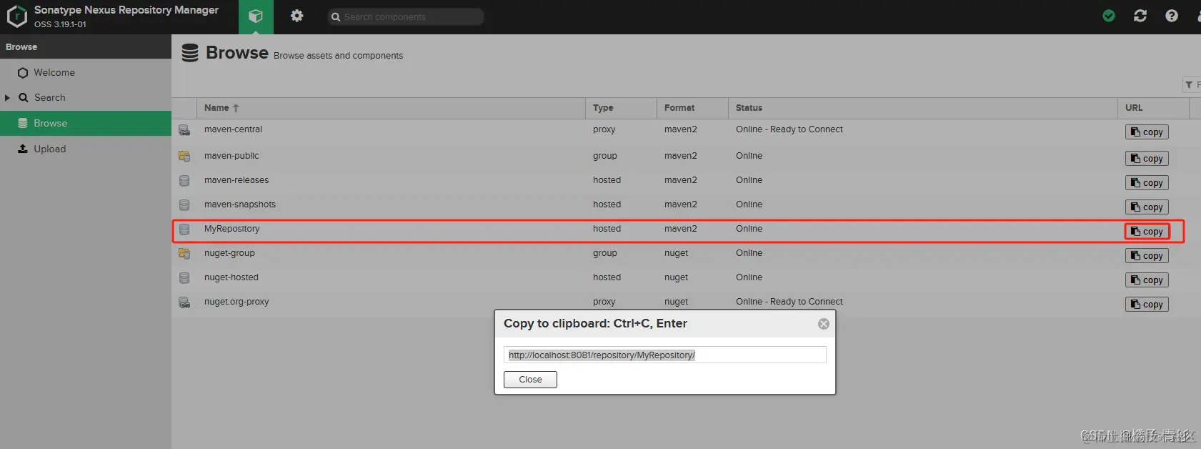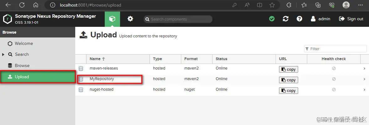 <url>http://localhost:8081/repository/MyRepository/</url>
