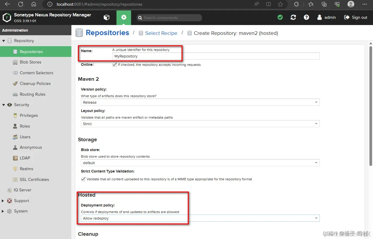 Nexus本地仓库(Hosted)类型: