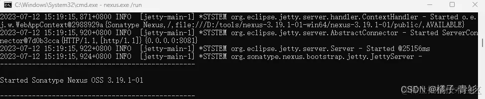 在当前目录打开cmd,并输入nexus.exe/run: