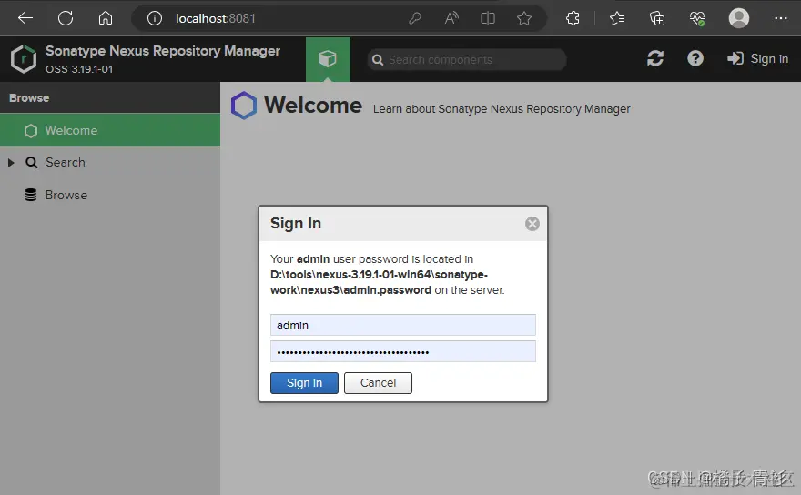 - 3.x的版本,初始账户是admin,密码在sonatype-work\nexus3\admin.password文件里