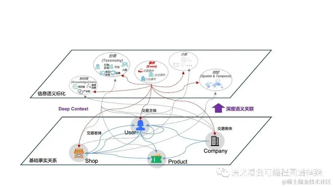 - 商品推荐:通过类目、意图、时空等语义, 连接人- 商品、人- 商户、商品- 渠道等,实现语义联想的商品召回和表征迁移;