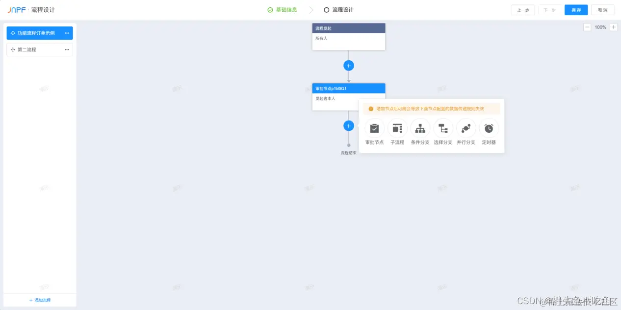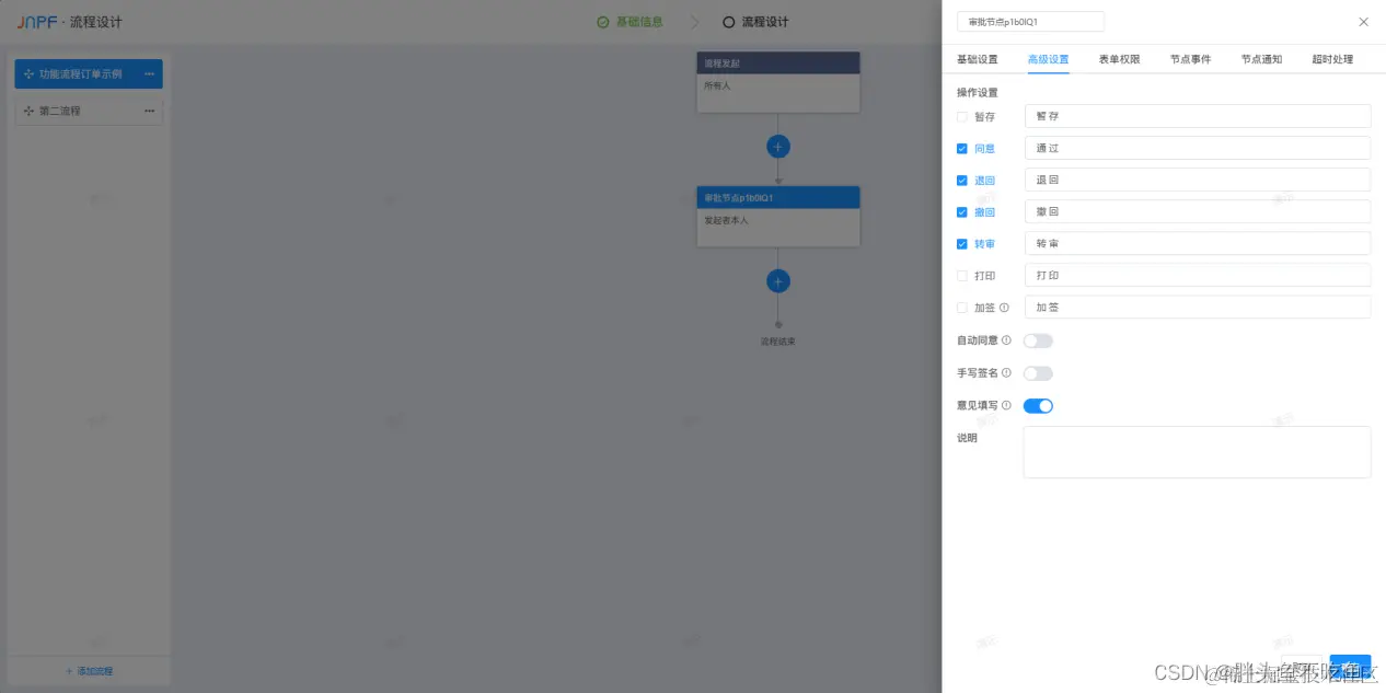 强大流程定义功能(节点审批、子流程、条件分支、选择分支、并分支、定时器等),业务逻辑简单好理解、业务流程梳理快捷明了,同时支持一表单多流程的设置。