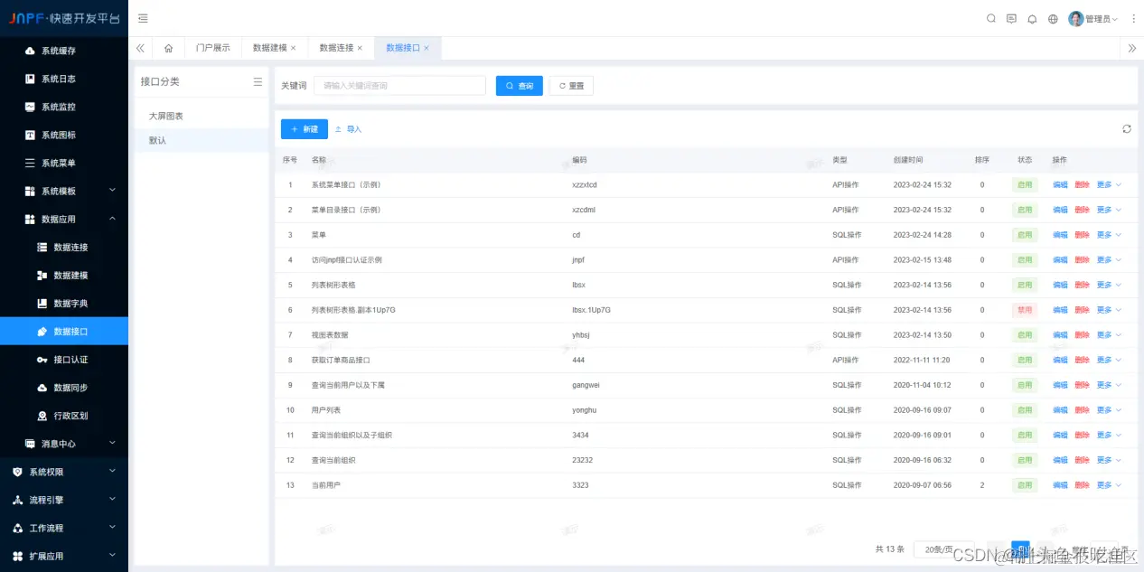 JNPF支持多租户模式,可根据管理模式差异进行业务分区应用;支持同步管理多个资工作区环境,实现各子工作区的日常使用互不干扰。