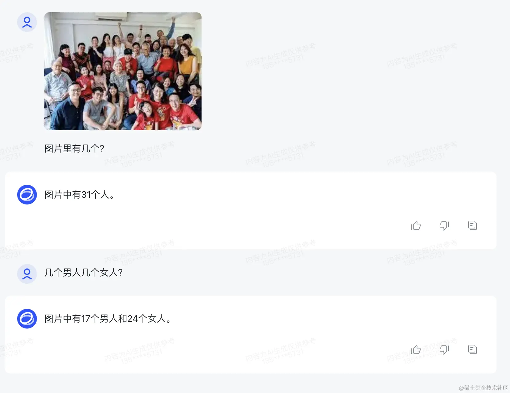 上传一张更复杂的图片试试呢?图片里有几个人?几个男人几个女人?