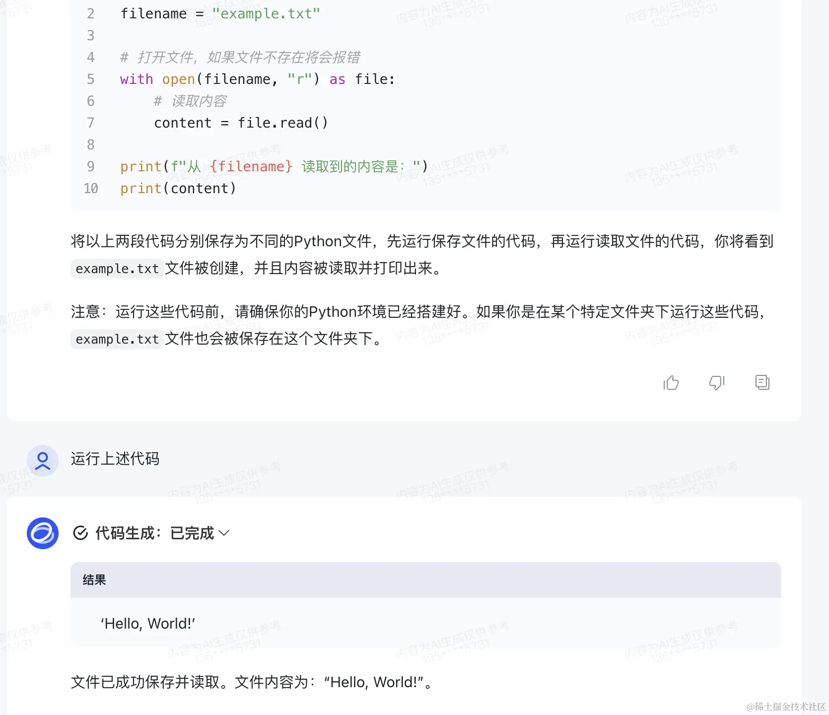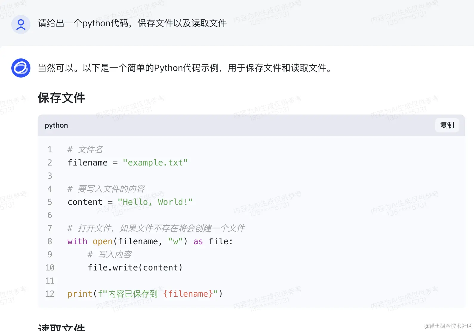 为了测试基本的代码能力,我让它进行python得文件读取和保存: