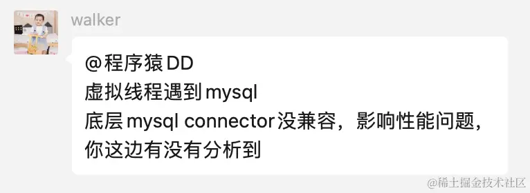 早上看到群友问到一个关于虚拟线程遇到MySQL连接不兼容导致的性能问题:
