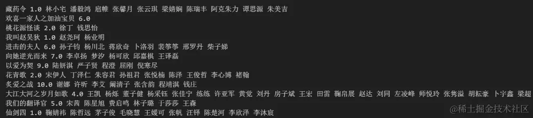 接下里,我们按照上面的数据提取思路,来编写获取单个HTML文件电视剧信息的代码。单个文件处理完之后,扩展到多个文件的数据处理就简单了。 代码如下: