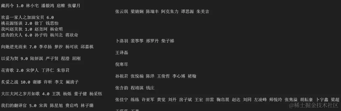 可以看到,我们成功用我们写的函数来从 tv2.html 中提取了电视剧的信息。这样要实现从一百多个文件中抽取信息,只需要写一个循环,来每次传给 get_tv_from_html 函数不同的文件名即可。【这里就不再放循环代码了,新手小伙伴可以试试自己来写,如果有问题可以联系。】
