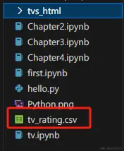 执行之后,没有内容输出,但是可以看到在源代码文件夹下已经生成了 tv_rating.csv 文件。