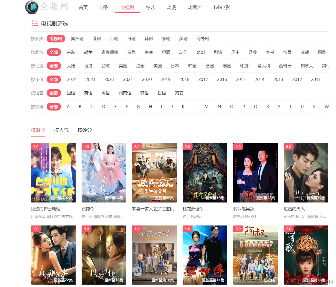 打开全集网中的国产电视剧主页,可以看到如下图示。