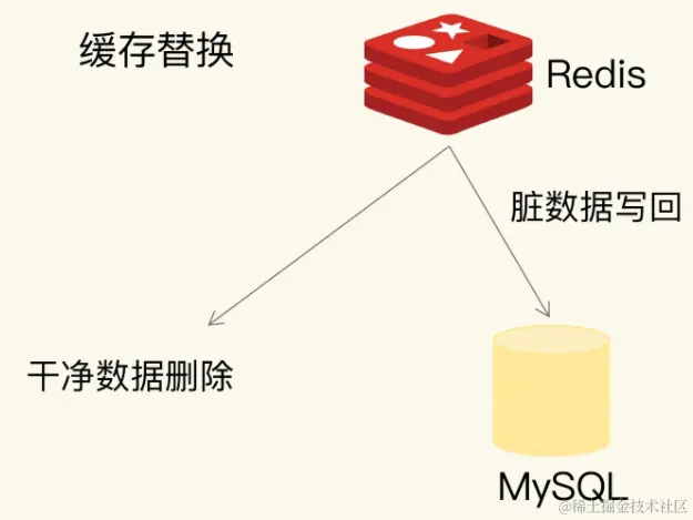 一旦被淘汰的数据选定后,如果这个数据是干净数据,就直接删除;如果这个数据是脏数据,需要写回数据库,如下图所示: