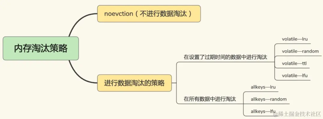 eg: 使用 EXPIRE 命令对一批键值对设置了过期时间后,无论是这些键值对的过期时间是快到了,还是 Redis 的内存使用量达到了 maxmemory 阈值,Redis 都会进一步按照 volatile-ttl、volatile-random、volatile-lru、volatile-lfu 这四种策略的具体筛选规则进行淘汰。