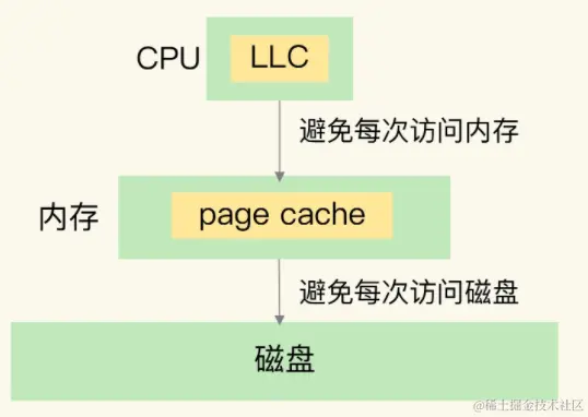 内存中的高速页缓存,即 page cache,用来缓存磁盘中的数据,避免每次从磁盘中存取数据。