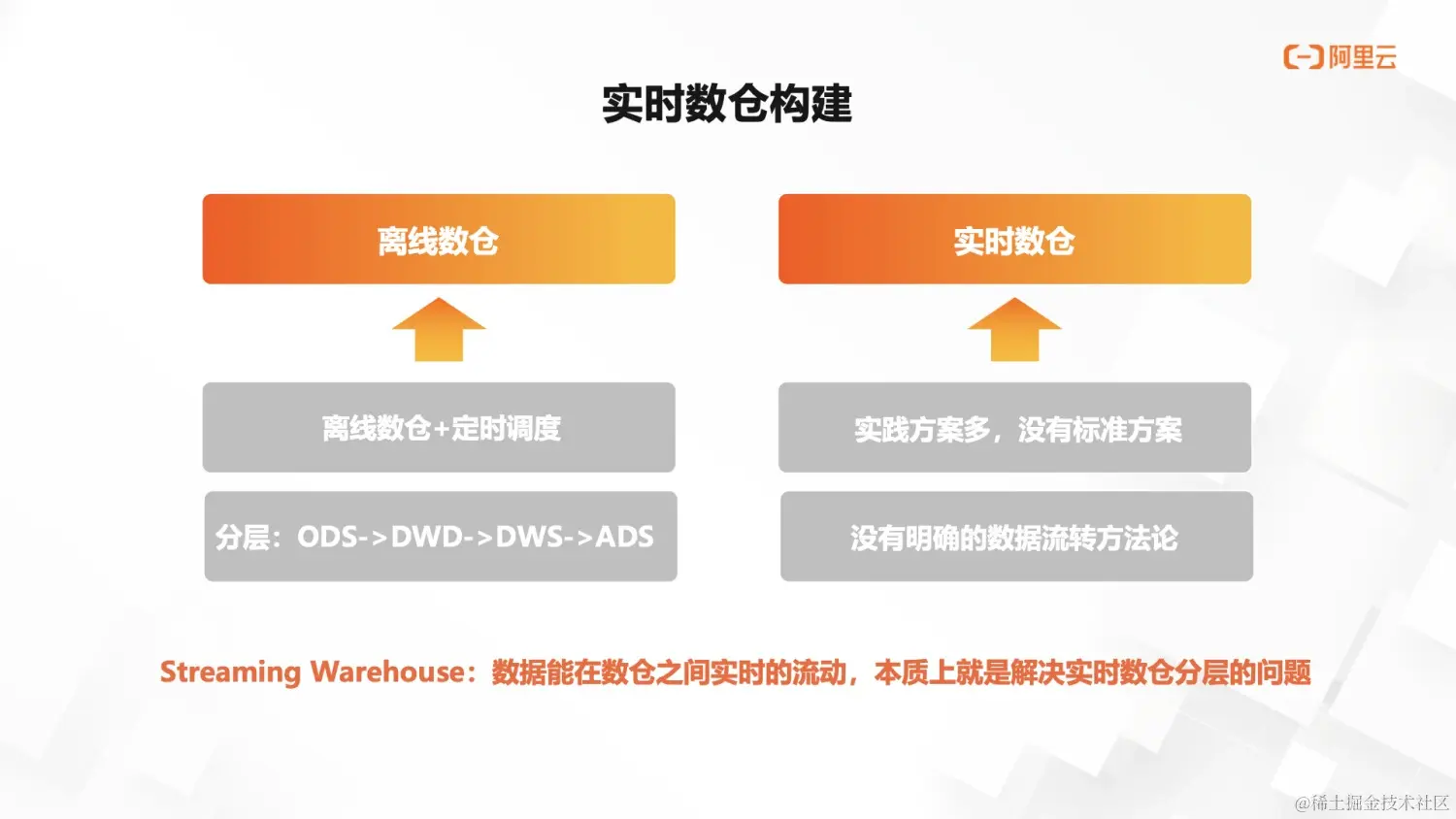 如何去构建实时数仓?对于离线数仓的构建,我们具有非常标准的方法论体系,数据进来以后,从 ODS 层、DWD 层、DWS 层、ADS 层这样一层一层的加工,每一层都是通过定时调度任务来完成的。