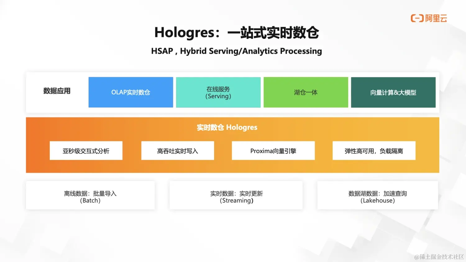 2023 年 12 月,由阿里云主办的实时计算闭门会在北京举行,阿里云实时数仓 Hologres 研发负责人姜伟华现场分享 Hologres+Flink 构建的企业级实时数仓,实现全链路的数据实时计算、实时写入、实时更新、实时查询。同时,随着流式湖仓的兴起,Hologres 除了支持 Delta、Hudi 等通用湖格式,在今年新增了对 Paimon 的深度集成,不断拓展湖仓一体能力。内容主要分为以下三部分: