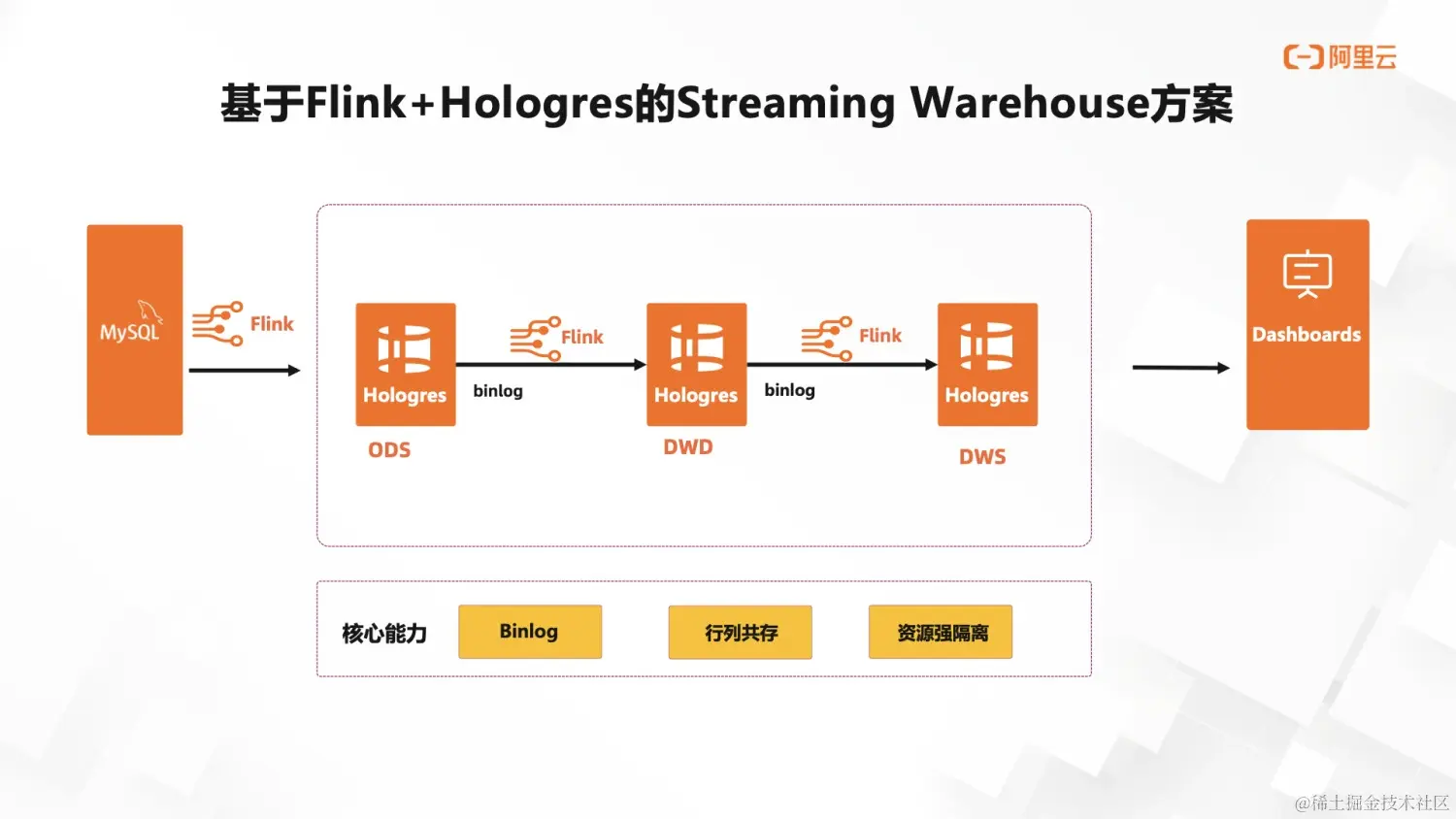 基于 Flink+Hologres 的 Streaming Warehouse 方案,实时数仓 Hologres 主要提供了三大核心能力: