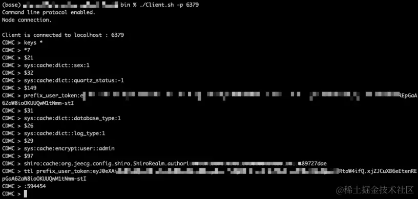 TongRDS自带的客户端pmemdb/bin/Client.sh访问RDS查看keys。缓存数据已正常存入RDS中。