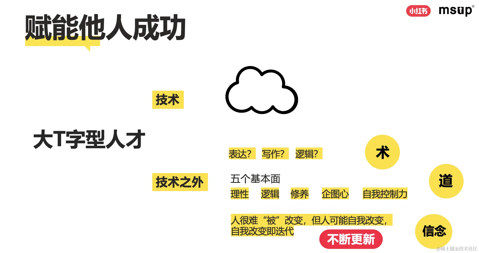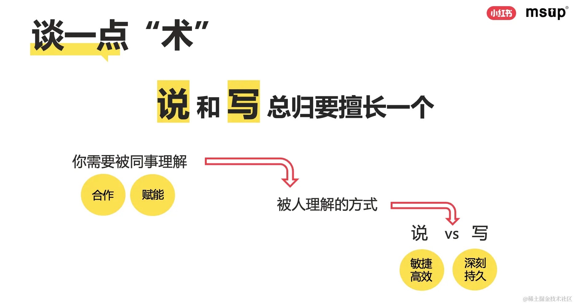 “术”,就是方法。“ 作为一个技术人员,无论未来有没有成长到管理岗位上,说和写总归要擅长一个。”