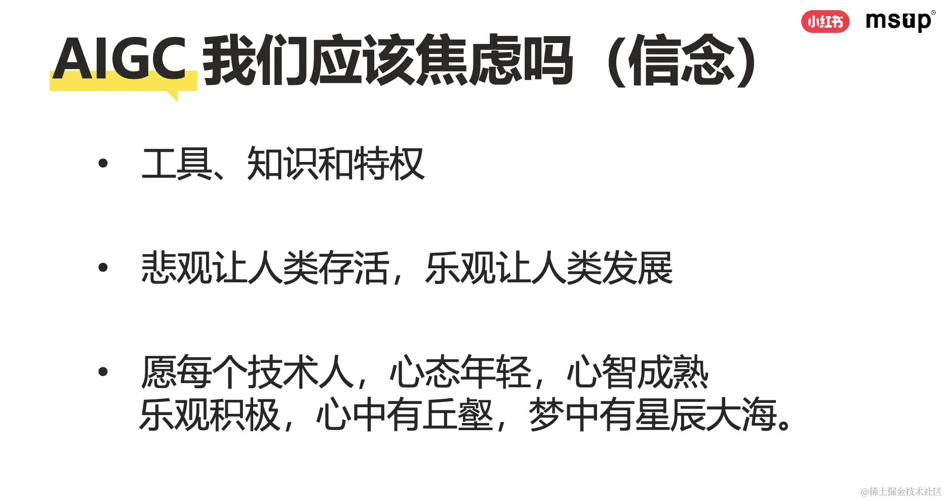 本次大会主题与 AIGC 密切相关,那么在 AIGC 时代,我们要以一个什么样的心态去迭代自己?我们应该焦虑吗?